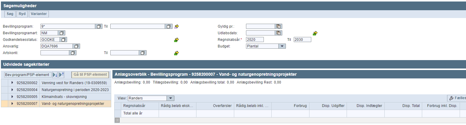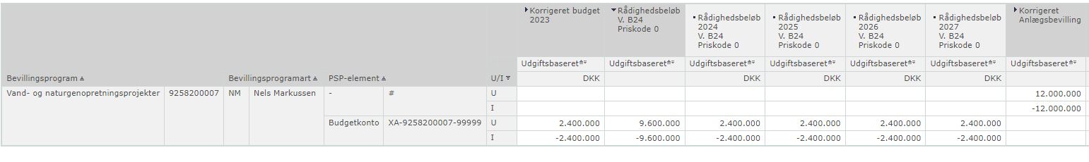 Se eksempel. Selvom projektet har anlægsbevilling på 12 mio. kr. i indtægt og udgift, samt rådighedsbeløb fordelt i 2023-2027, er anlægsoverblikket tomt for tal.