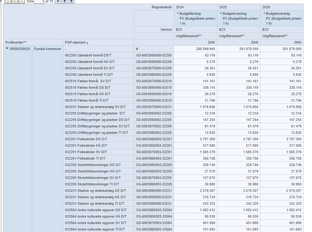 Gennemført: PSP-elementer under Budget og Bevillinger